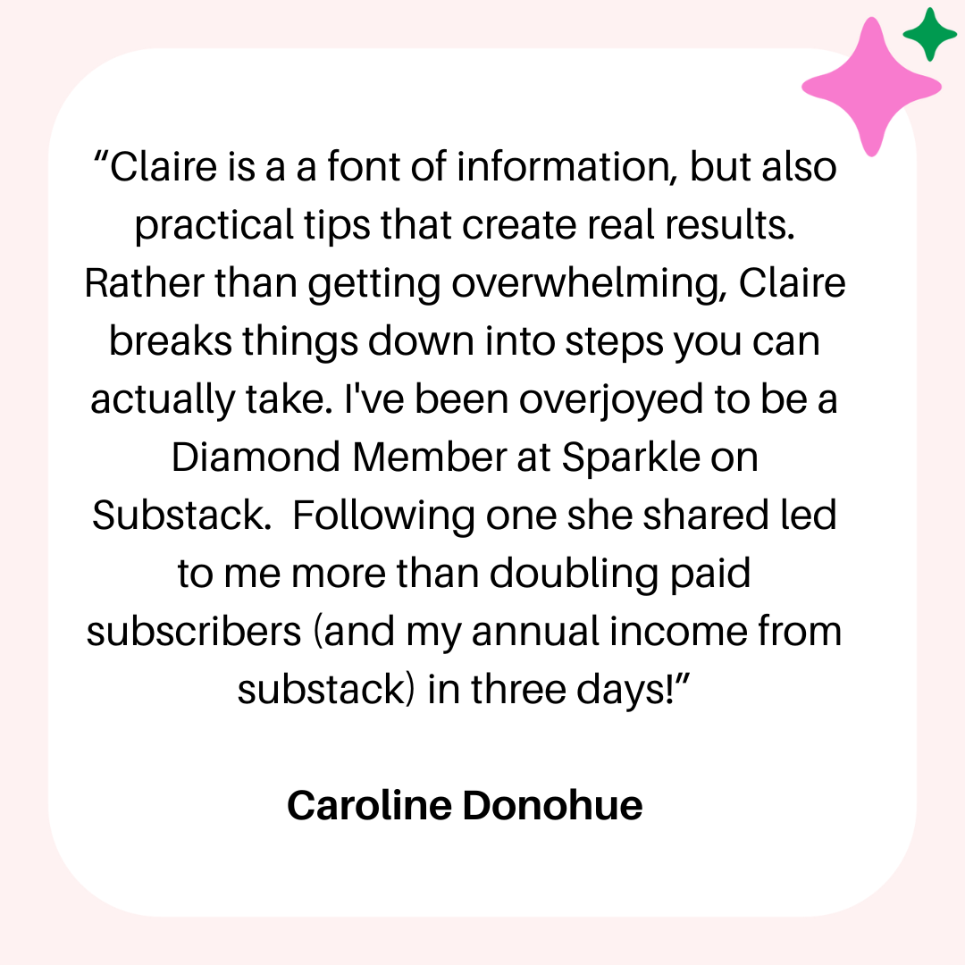 Hi, I'm Claire. I'm an Engagement Consultant and Mentor and I started my journey with Substack in 2022. I've built my audience to 16k readers across two publications, work with over 500 members and I'm so excited to share more with you.