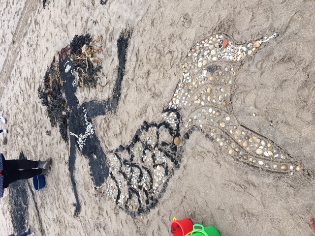Co-creating beach art works with artists Judith Davies and Yvette Ja for Action for Children children's centre in Newbiggin by the Sea.