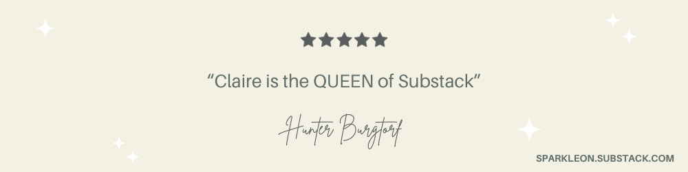 "I've been overjoyed to be a Diamond Member at Sparkle on Substack, but I also snatched up Claire's book and attended the World-Class Substack workshop she ran with co-author Russell Nohelty.