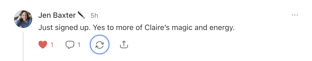 Claire gives you confidence to develop at your own pace. She's the go-to person on Substack. Without Claire I don't think I'd have found the community I never knew I needed.