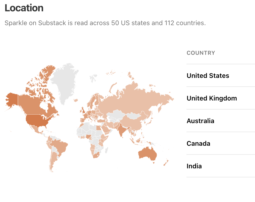 Light ups and people reading all over the world... Substack sure does show us some beautiful data.