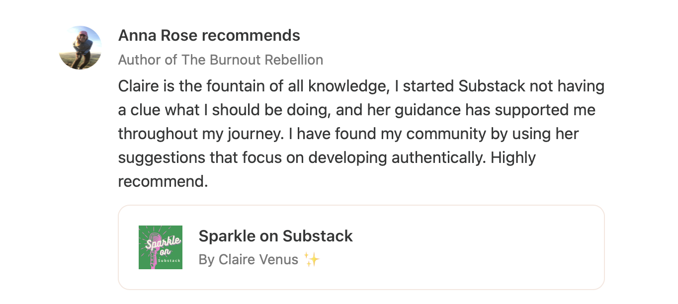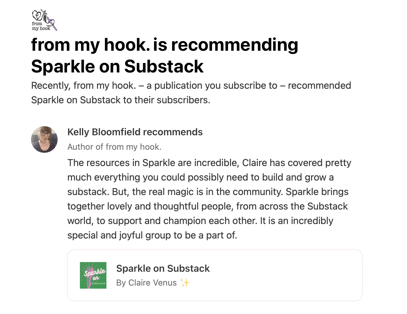 "I've been overjoyed to be a Diamond Member at Sparkle on Substack, but I also snatched up Claire's book and attended the World-Class Substack workshop she ran with co-author Russell Nohelty.