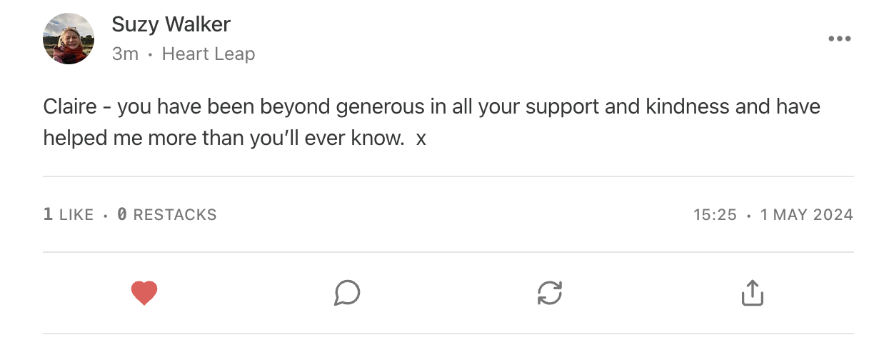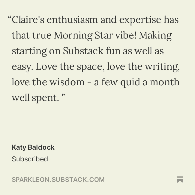 Lovely to meet you, I'm Claire - I started my journey with Substack in April 2022 and have grown my writer profile to over 8000 subscribers. Here are my Substack publications