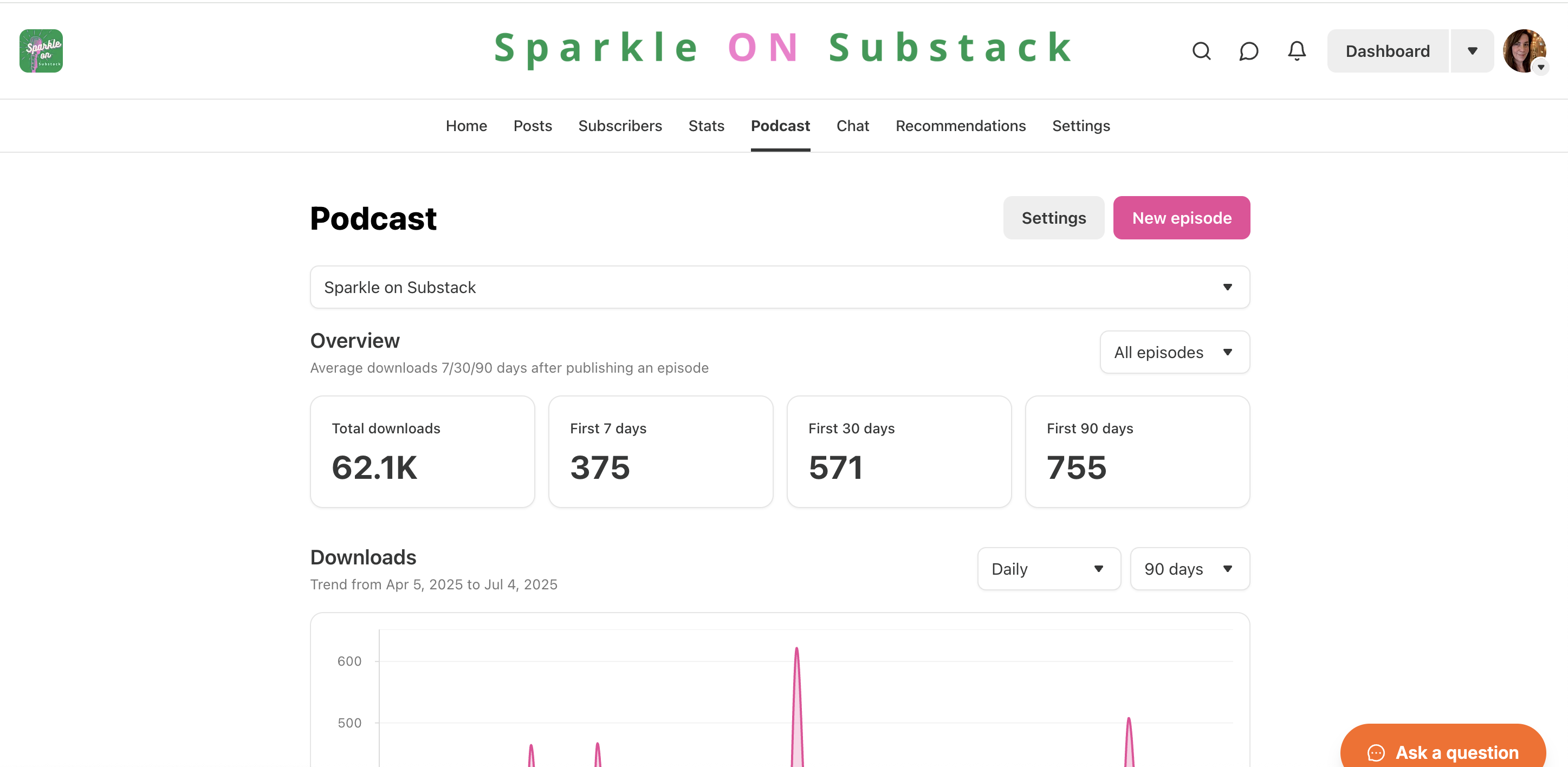 I have since recorded over 30 episodes of Sparkle on Substack and used a variety of methods with tech and interviewing/ publishing techniques to test what has the MOST engagement (and downloads).
