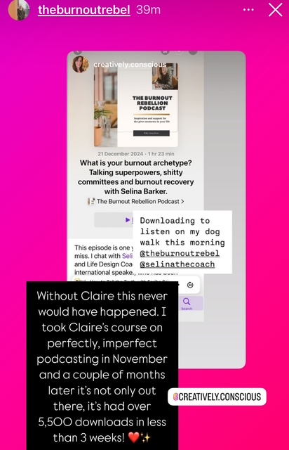 "Claire is so generous and encouraging in what she shares. I feel inspired to create and share my podcast in 2025, which has been an idea I've had for a few years. Highly recommend anything that Claire does, as she shares in a gentle and heart-felt way."